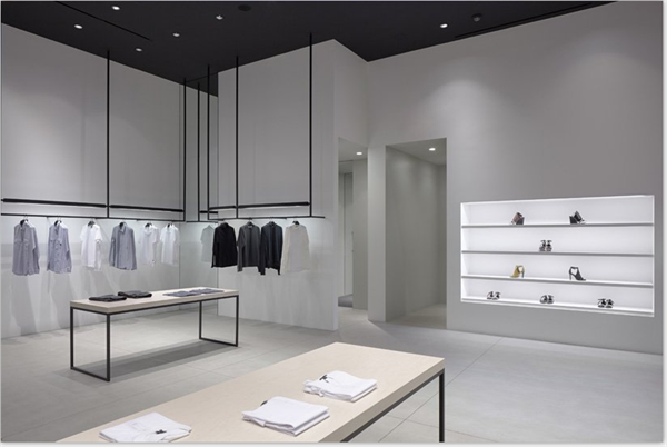 在現代簡約部分,展示的是一個品牌服裝展廳,利用極簡的線條,交錯的光影,還有樸素的顏色,整體呈現高級感。